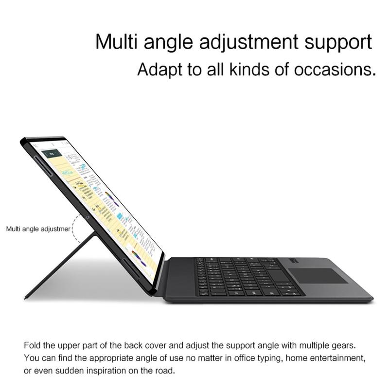 Améliorez votre Samsung Galaxy Tab S11 Ultra avec l'étui-clavier Bluetooth, un accessoire 2-en-1 multifonctionnel qui allie protection, productivité et style. Fabriqué en polyuréthane de première qualité, cet étui élégant offre une protection complète contre les rayures, les chocs et les empreintes digitales, tout en conservant un aspect professionnel. Le clavier Bluetooth se connecte sans fil pour une frappe fluide et réactive, tandis que le pavé tactile intégré prend en charge le contrôle multi-gestes pour une navigation sans effort. Le clavier rétroéclairé vous permet de taper confortablement même dans des environnements peu éclairés. Le support réglable intégré offre un angle de vue ergonomique, ce qui le rend parfait pour la saisie, la lecture en continu ou la lecture. Conçu pour les affaires, les voyages ou l'usage quotidien, cet étui-clavier transforme votre tablette en station de travail portable.