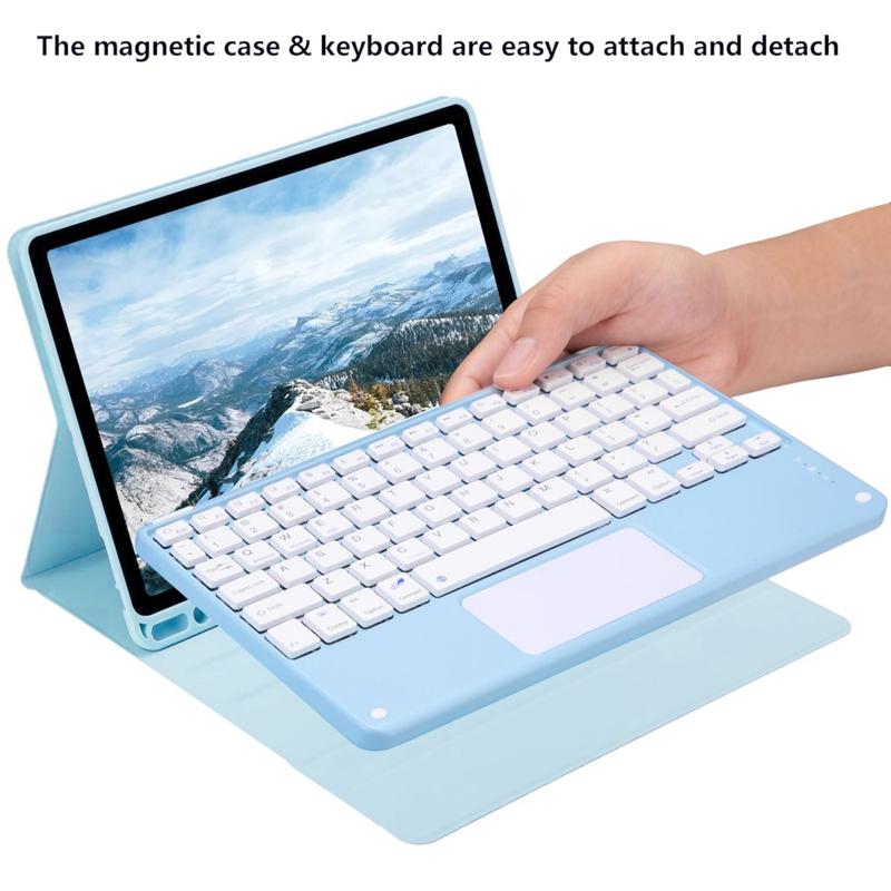 Améliorez votre iPad Air 11 2026/2025/2024, iPad Air 2022/2020 avec l'étui clavier Bluetooth, un accessoire 2-en-1 multifonctionnel qui allie protection, productivité et style. Fabriqué en polyuréthane de première qualité, cet étui élégant offre une protection complète contre les rayures, les chocs et les empreintes digitales, tout en conservant un aspect professionnel. Le clavier Bluetooth se connecte sans fil pour une frappe fluide et réactive, tandis que le pavé tactile intégré prend en charge le contrôle multi-gestes pour une navigation sans effort. Le clavier rétroéclairé vous permet de taper confortablement même dans des environnements peu éclairés. Le support réglable intégré offre un angle de vue ergonomique, ce qui le rend parfait pour la saisie, la lecture en continu ou la lecture. Conçu pour les affaires, les voyages ou l'usage quotidien, cet étui-clavier transforme votre tablette en station de travail portable.