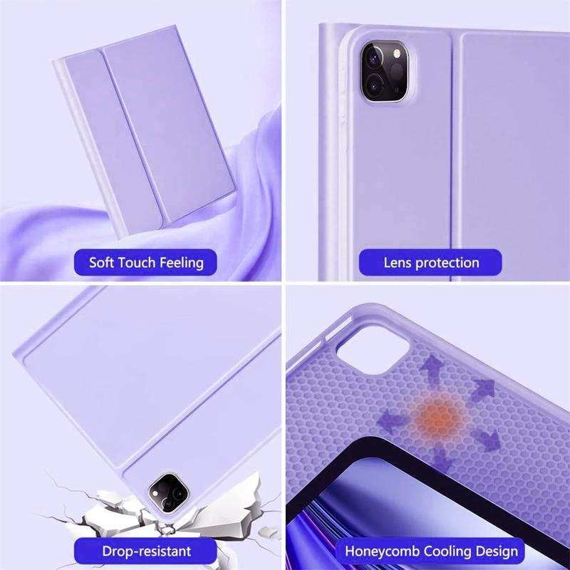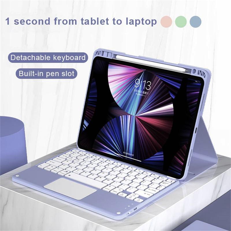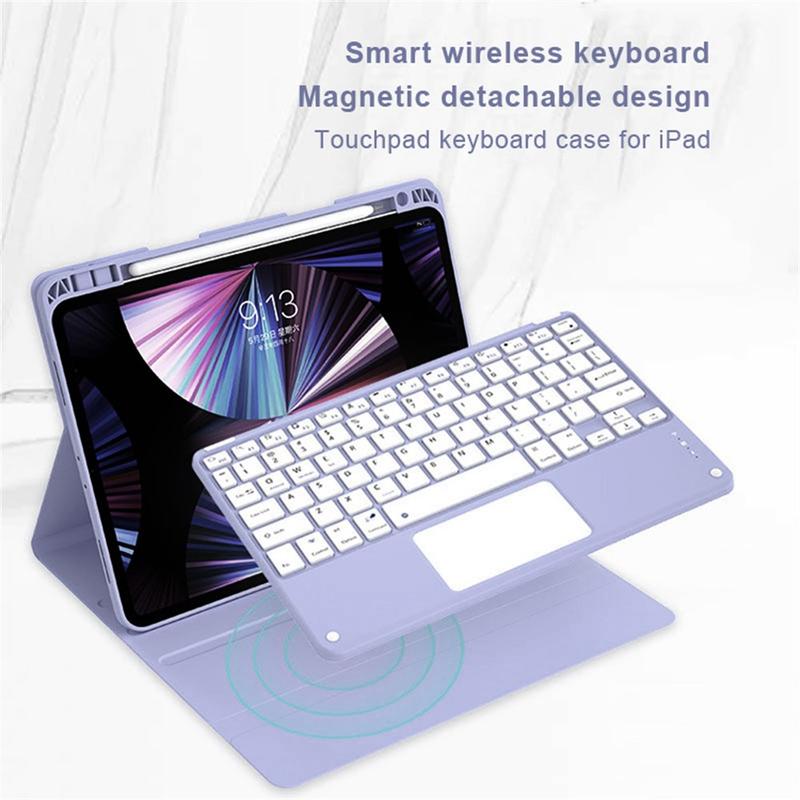 Améliorez votre iPad Air 13 2026/2025/2024, iPad Pro 12.9 2022/2021/2020/2018 avec l'étui clavier Bluetooth, un accessoire 2-en-1 multifonctionnel qui allie protection, productivité et style. Fabriqué en polyuréthane de première qualité, cet étui élégant offre une protection complète contre les rayures, les chocs et les empreintes digitales, tout en conservant un aspect professionnel. Le clavier Bluetooth se connecte sans fil pour une frappe fluide et réactive, tandis que le pavé tactile intégré prend en charge le contrôle multi-gestes pour une navigation sans effort. Le clavier rétroéclairé vous permet de taper confortablement même dans des environnements peu éclairés. Le support réglable intégré offre un angle de vue ergonomique, ce qui le rend parfait pour la saisie, la lecture en continu ou la lecture. Conçu pour les affaires, les voyages ou l'usage quotidien, cet étui-clavier transforme votre tablette en station de travail portable.