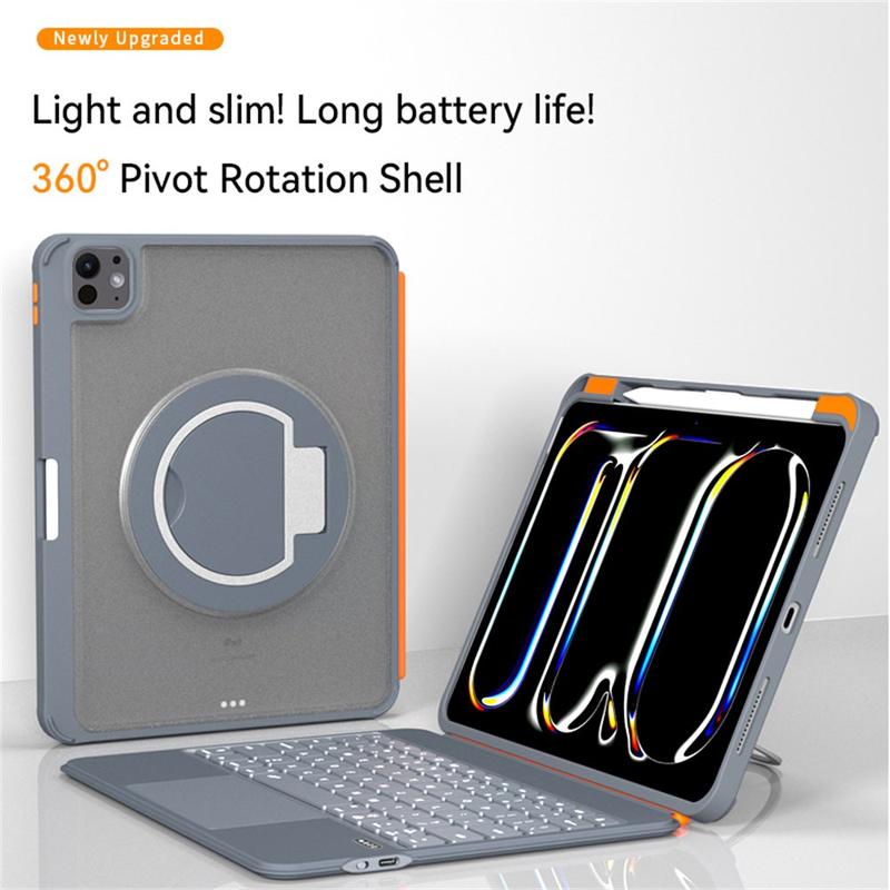 TU3607P Étui clavier magnétique rétroéclairé avec support pivotant à 360° pour iPad Pro 11 (2024), iPad Pro 11 (2025) - Étui intelligent détachable Bluetooth 5.3
