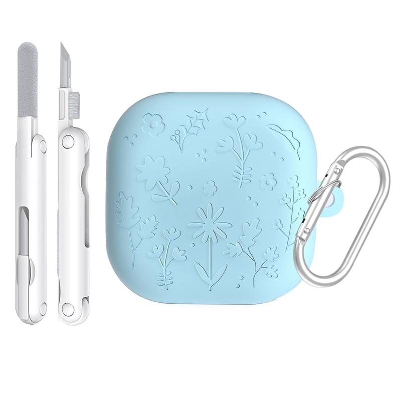 Étui en silicone gravé floral avec stylos de nettoyage et mousqueton pour Samsung Galaxy Buds4, Galaxy Buds4 Pro