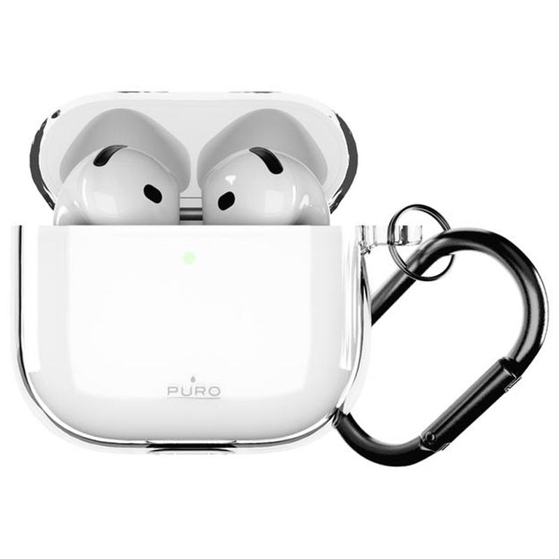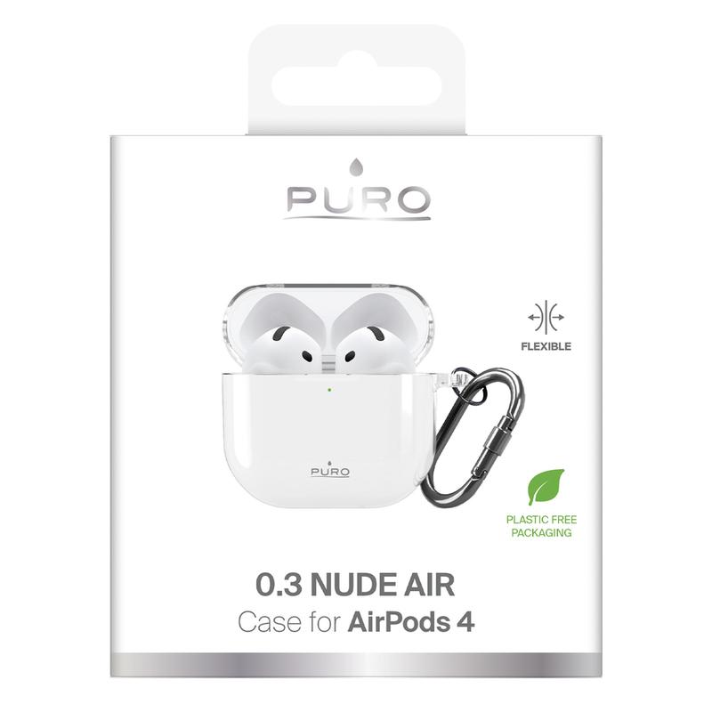 Étui Puro 0.3 Nude en TPU pour AirPods 4 - Coque en TPU ultra-fine transparente avec mousqueton métallique