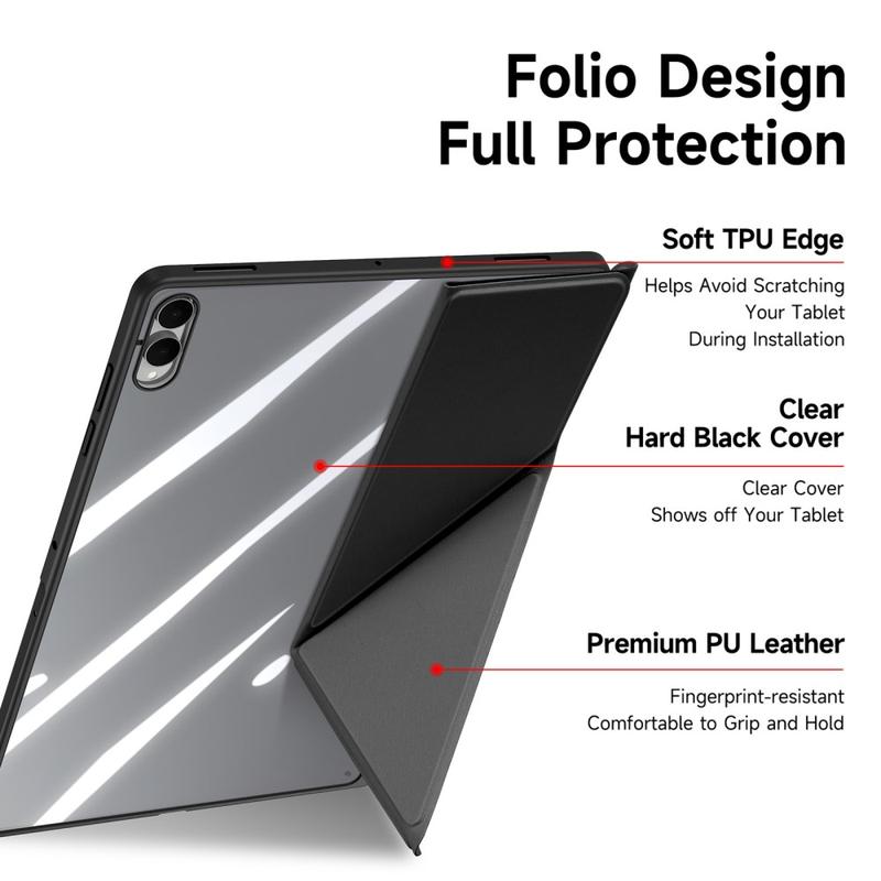 Ultra-mince : l'extérieur de l'étui, léger et doux au toucher, est fabriqué en cuir PU de première qualité, l'intérieur anti-rayures offre une excellente protection, et le cadre en TPU + le dos en PC rendent votre tablette plus stable.