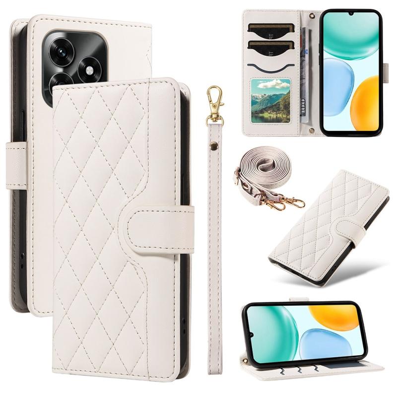 Étui de luxe matelassée avec bandoulière et poignet pour Honor X5c Plus - Étui protectrice à motif en losange