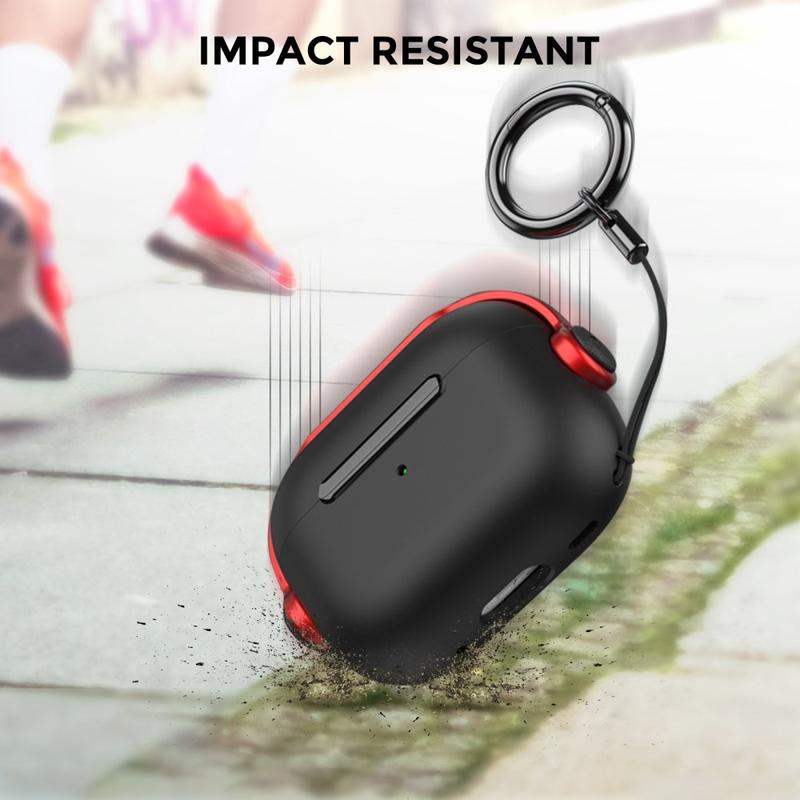 AhaStyle WG109 Étui hybride pour AirPods Pro, AirPods Pro 2 - Étui de protection antichoc en TPU + PC avec sangle, clip de verrouillage et anneau de support pliable
