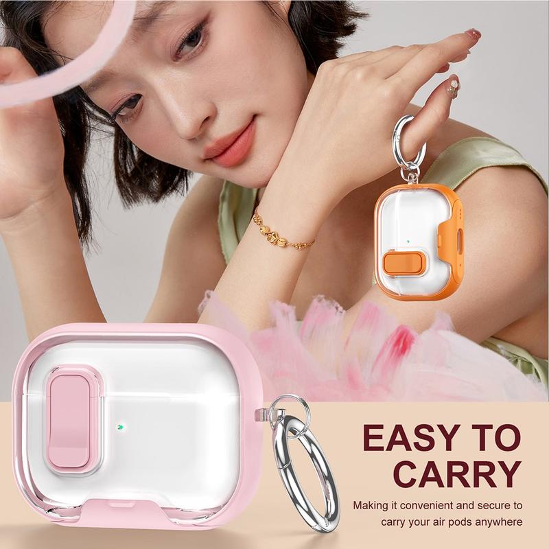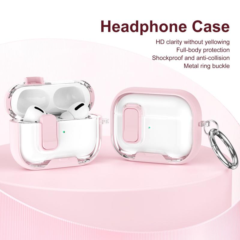 Étui hybride de protection AirPods Pro 2 avec verrou et crochet - Rose / Transparente