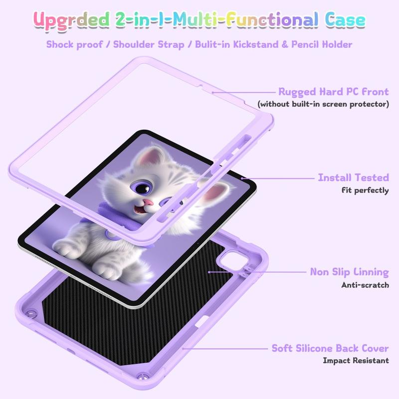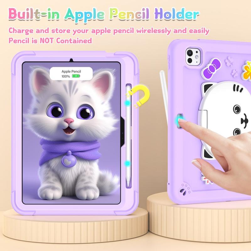 Étui hybride iPad Pro 11 2024/2025 avec béquille et chat mignon - Violet clair