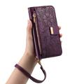 Etui portefeuille à motifs floraux et de feuilles avec pochette zippée et dragonne pour iPhone 16