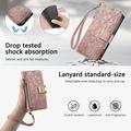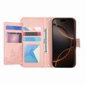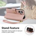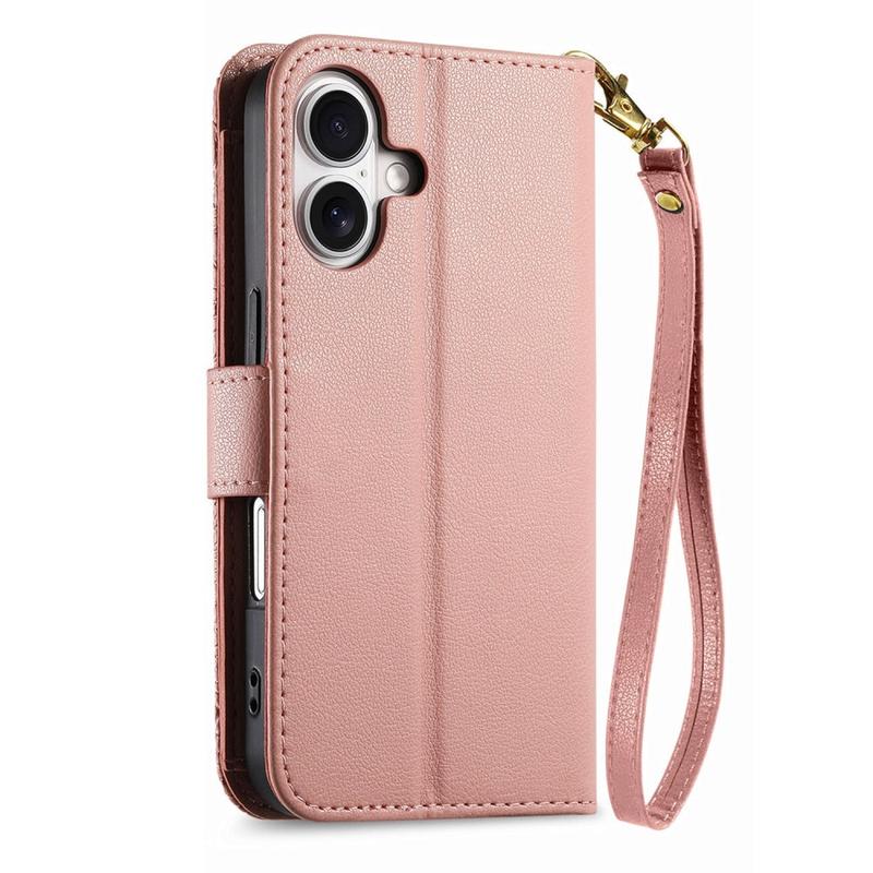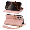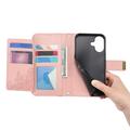 Etui iPhone 17 à motifs floraux et de feuilles avec pochette zippée et dragonne - Rose