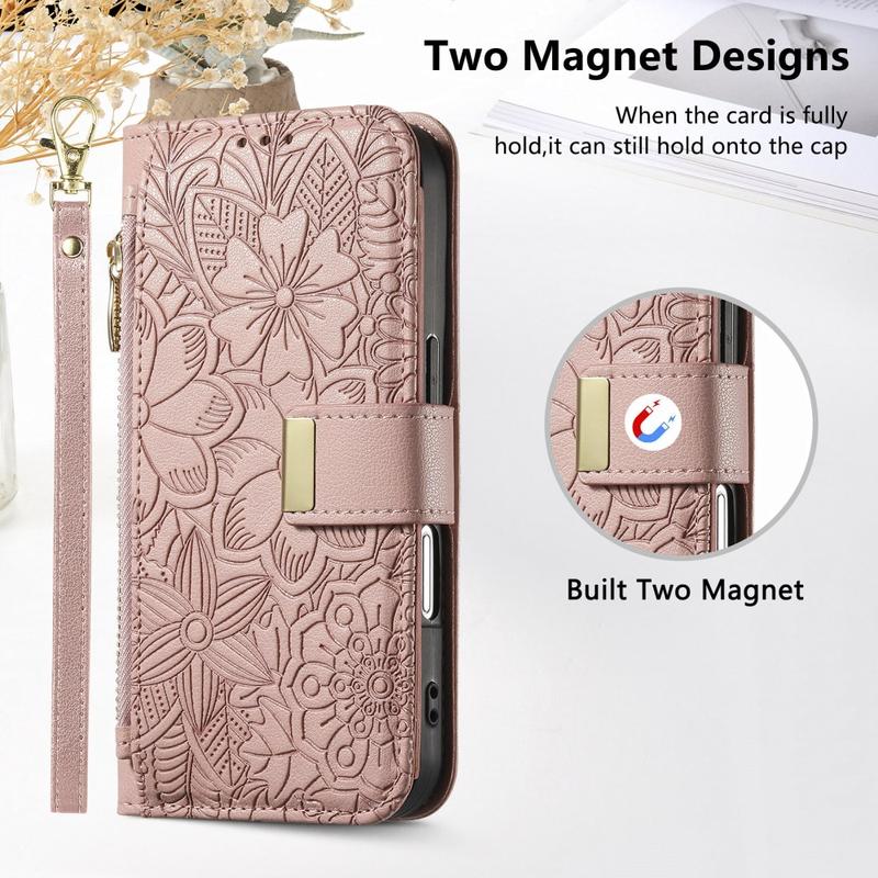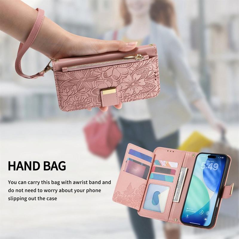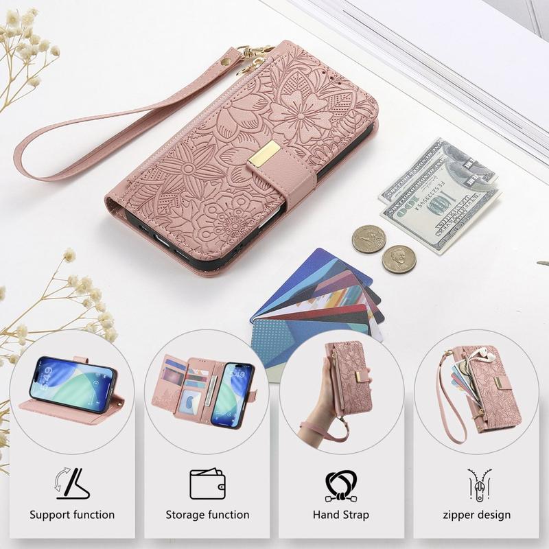 Les étuis portefeuille sont devenus de plus en plus populaires en tant qu'alternative écologique au port d'un portefeuille et d'un étui pour l'iPhone 17 Pro. Le processus de gaufrage floral n'améliore pas seulement l'apparence, mais renforce également la surface en polyuréthane, ce qui la rend plus durable contre les rayures.