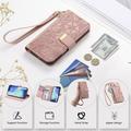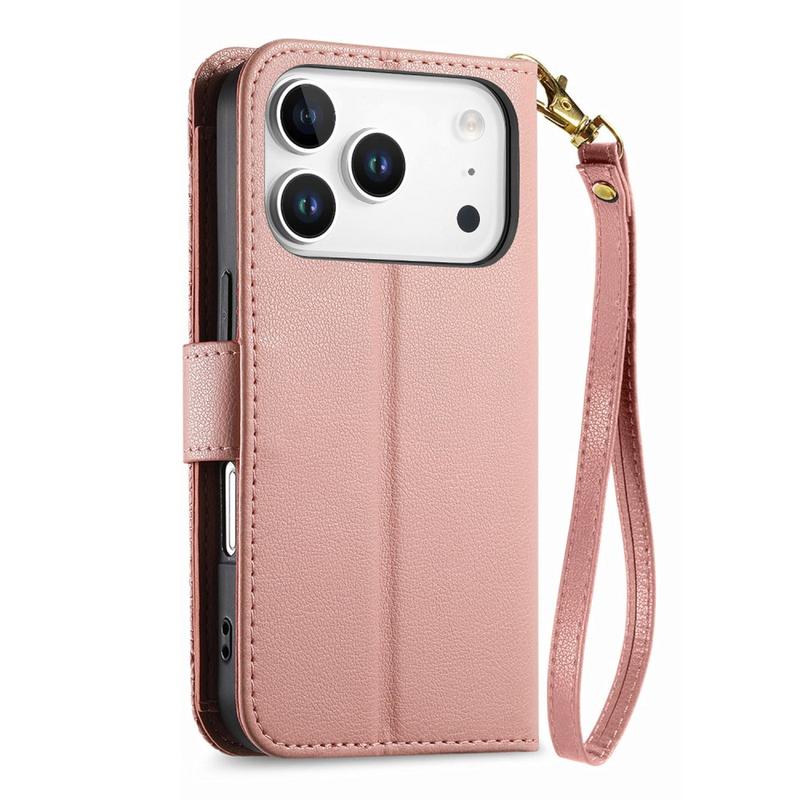 • Etui portefeuille à motifs floraux et de feuilles avec pochette zippée et dragonne pour iPhone 17 Pro