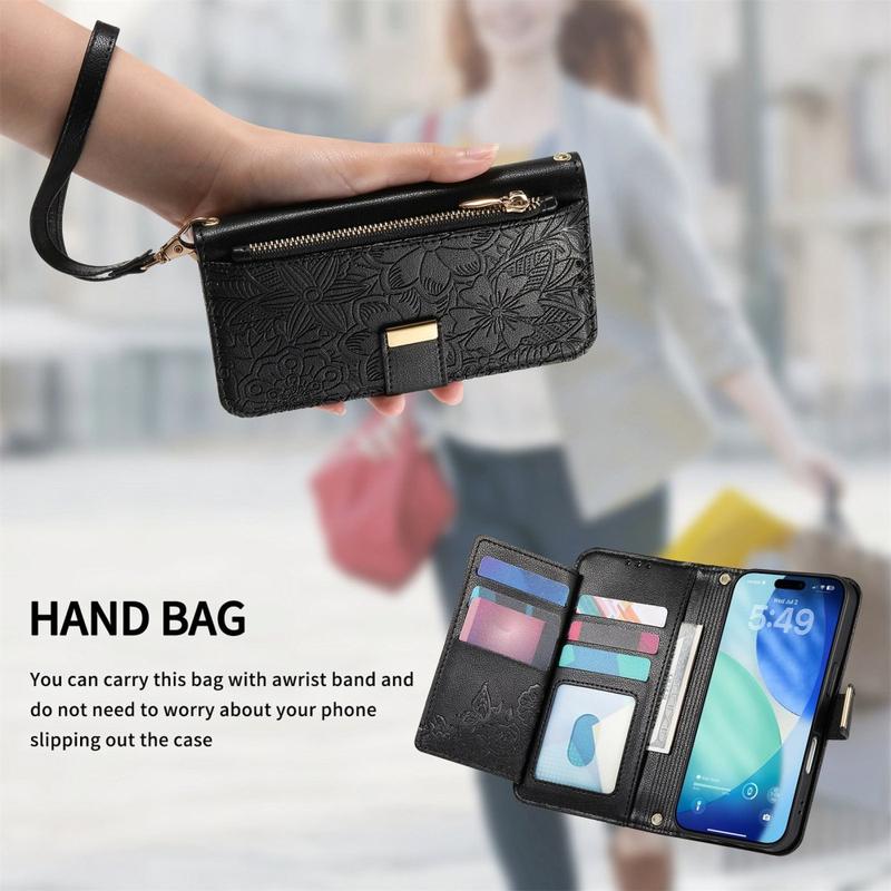 Organisez vos objets essentiels tout en ajoutant de l'élégance à votre iPhone 17 Pro Max grâce à cet étui portefeuille à motif de feuilles fleuries. Doté de plusieurs fentes pour cartes, d'une poche zippée sécurisée et d'une dragonne amovible, cet étui est le parfait mélange de praticité et de style. Fabriqué en TPU et en polyuréthane durables, il offre une protection fiable tout en servant de portefeuille tout-en-un à la mode.