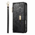 Etui portefeuille à motifs floraux et de feuilles avec pochette zippée et dragonne pour iPhone 17 Pro Max