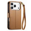 Etui portefeuille à motifs floraux et de feuilles avec pochette zippée et dragonne pour iPhone 17 Pro Max