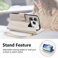 Etui portefeuille à motifs floraux et de feuilles avec pochette zippée et dragonne pour iPhone 17 Pro Max