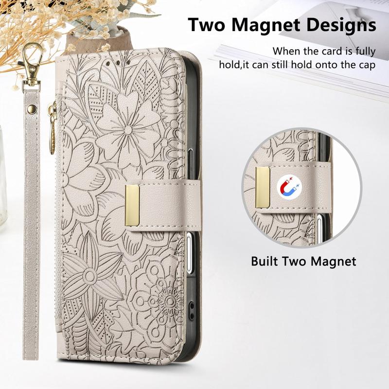Les étuis portefeuille sont devenus de plus en plus populaires en tant qu'alternative écologique au port d'un portefeuille et d'un étui pour l'iPhone 17 Pro Max. Le processus de gaufrage floral n'améliore pas seulement l'apparence, mais renforce également la surface en polyuréthane, ce qui la rend plus durable contre les rayures.