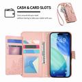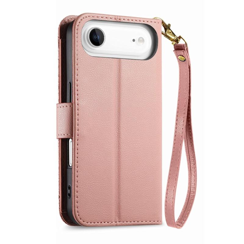 Etui portefeuille à motifs floraux et de feuilles avec pochette zippée et dragonne pour iPhone Air