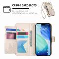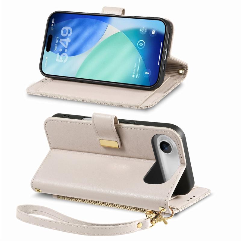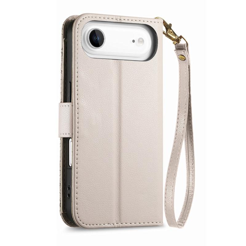 Etui portefeuille à motifs floraux et de feuilles avec pochette zippée et dragonne pour iPhone Air