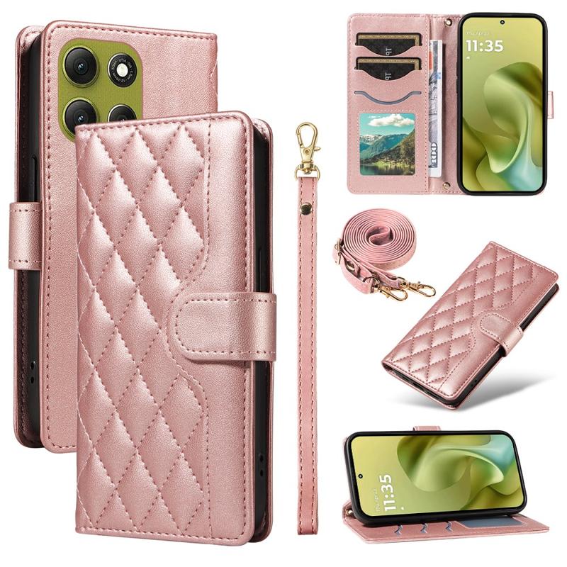 Protégez votre Motorola Moto G86 avec ce luxueux étui portefeuille matelassé. Fabriqué à partir d'un matériau TPU recouvert de cuir PU, cet étui est résistant aux rayures et aux empreintes digitales, ce qui permet à votre téléphone de rester élégant et raffiné. La ligne de couture forme un motif de grille en losange, ajoutant une touche de mode et de beauté à l'étui. Le bord surélevé de l'appareil photo et de l'écran offre une protection efficace contre les rayures, tandis que les découpes précises permettent d'accéder à tous les boutons, ports et autres fonctions. Le design portefeuille permet de ranger facilement les cartes essentielles et l'argent, et les ventouses incluses peuvent servir de support pour une utilisation mains libres. Avec une protection accrue contre les rayures, les chocs, les chutes et les dommages quotidiens, cet étui est également fourni avec une bandoulière et une sangle de poignet pour plus de commodité.