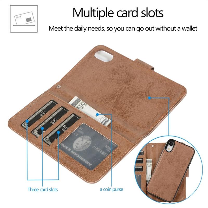 - 1 x étui portefeuille pour iPhone XR avec couvercle amovible