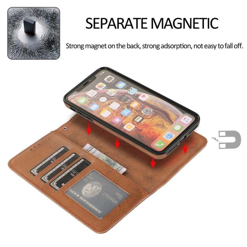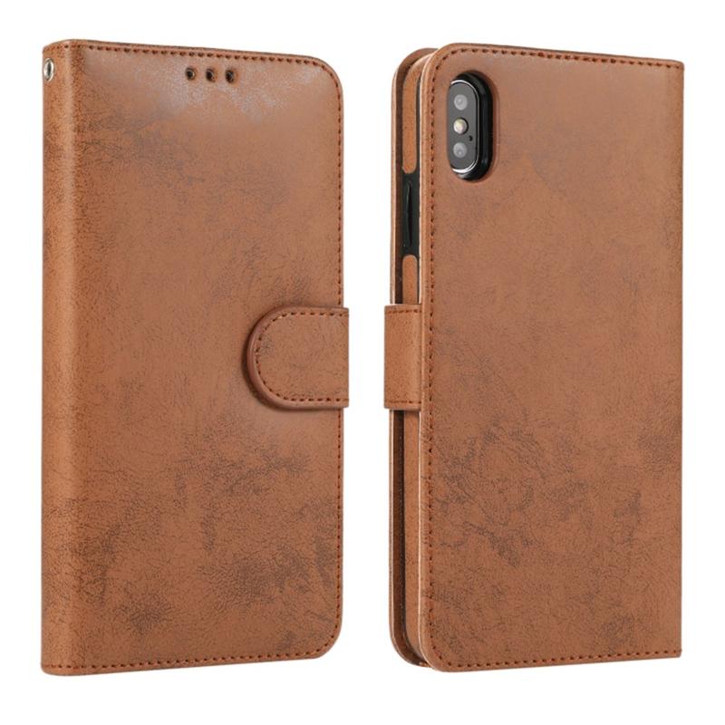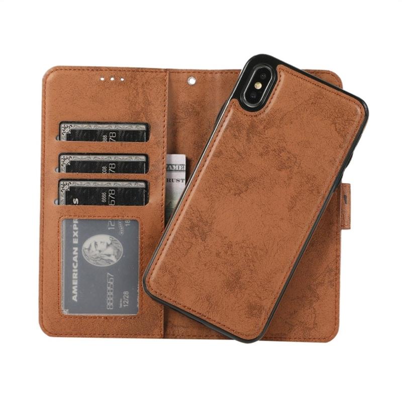 Étui portefeuille vintage 2-en-1 avec rabat magnétique amovible pour iPhone XS Max