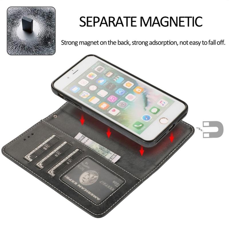 Étui portefeuille vintage 2-en-1 avec rabat magnétique amovible pour iPhone 7 Plus, iPhone 8 Plus