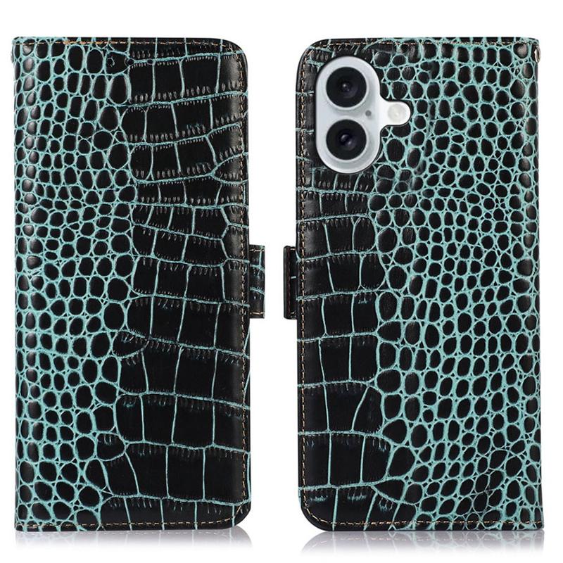 - Étui en cuir de portefeuille de la série Crocodile pour iPhone 16