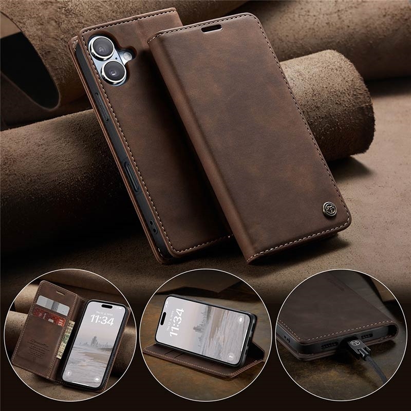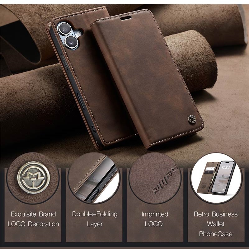- Étui portefeuille de la série Caseme 013 pour votre précieux iPhone 16 Plus