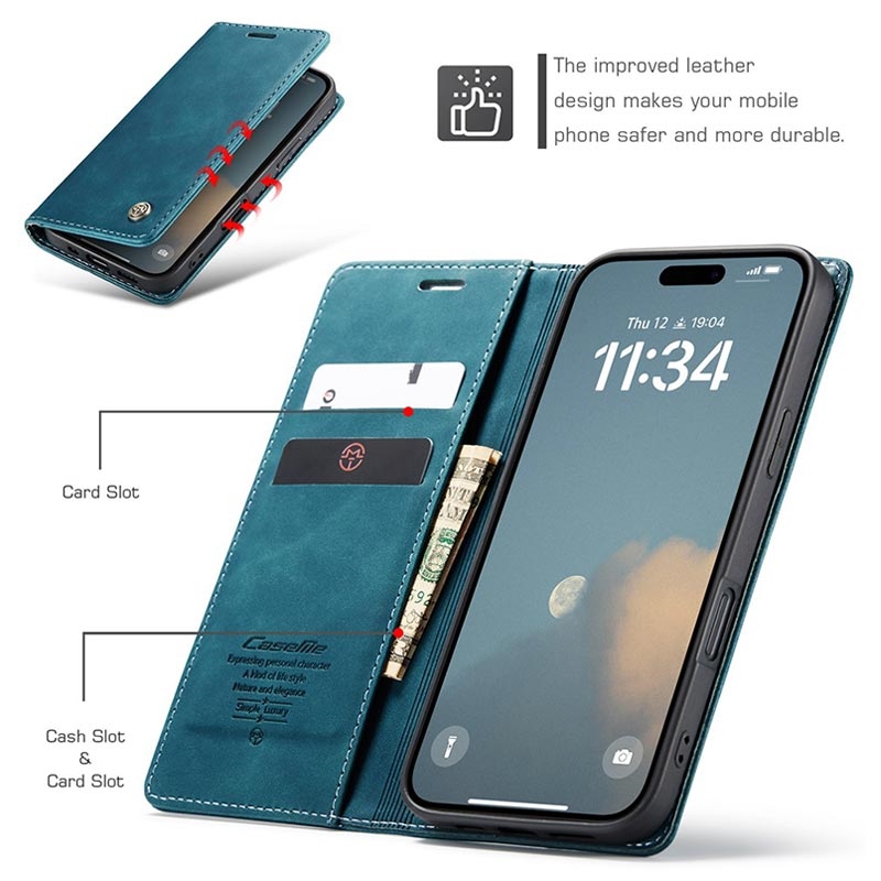 Étui Portefeuille avec Fermeture Magnétique Caseme Série 013 pour iPhone 16 Plus