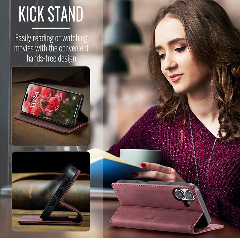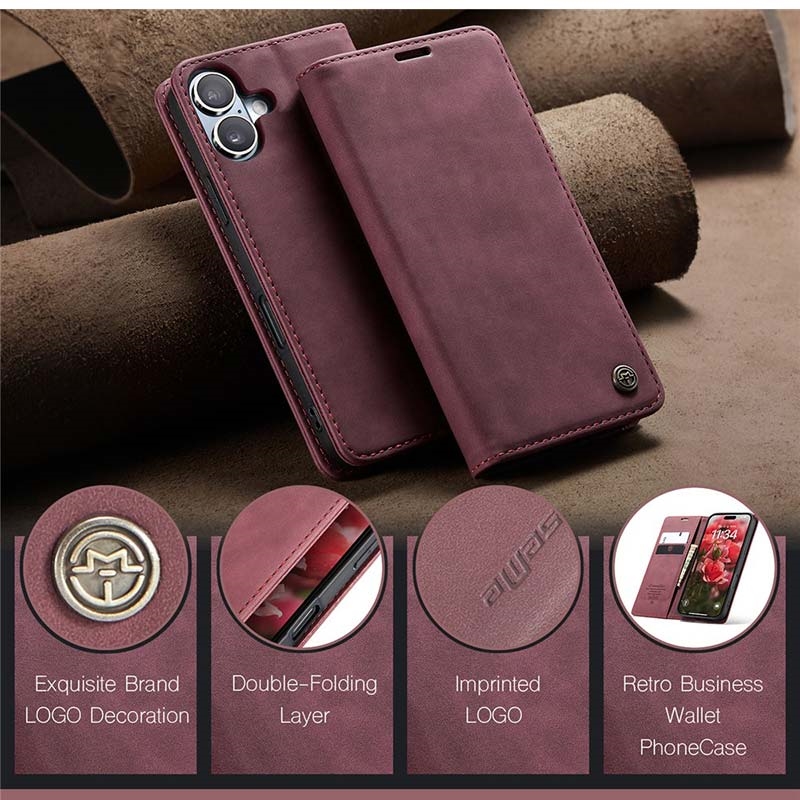 - Étui portefeuille de la série Caseme 013 pour votre précieux iPhone 16 Plus