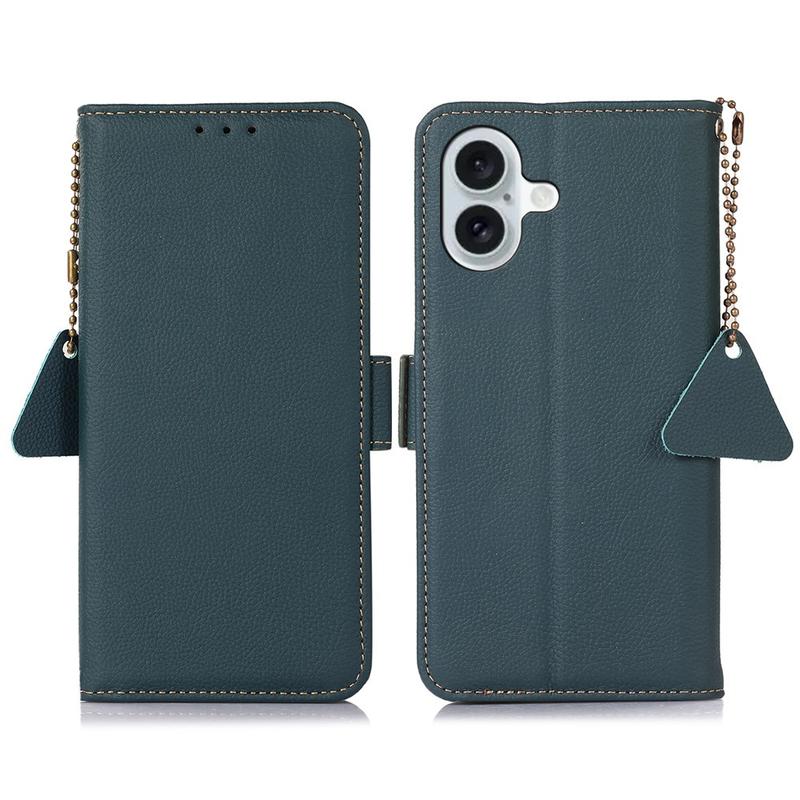 - Étui portefeuille en cuir avec couche de blocage RFID pour iPhone 16 Plus