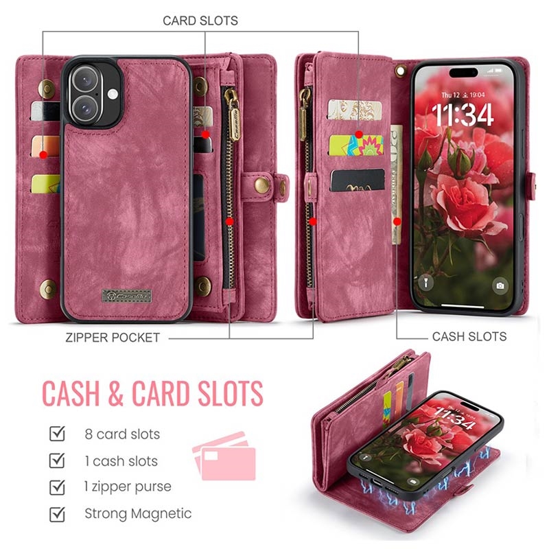 Rendez votre journée super efficace avec l'étui portefeuille 2-en-1 Caseme 008 pour iPhone 16 Plus.