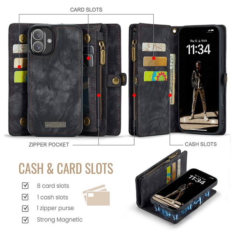 Rendez votre journée super efficace avec l'étui portefeuille 2-en-1 Caseme 008 pour iPhone 16 Plus.