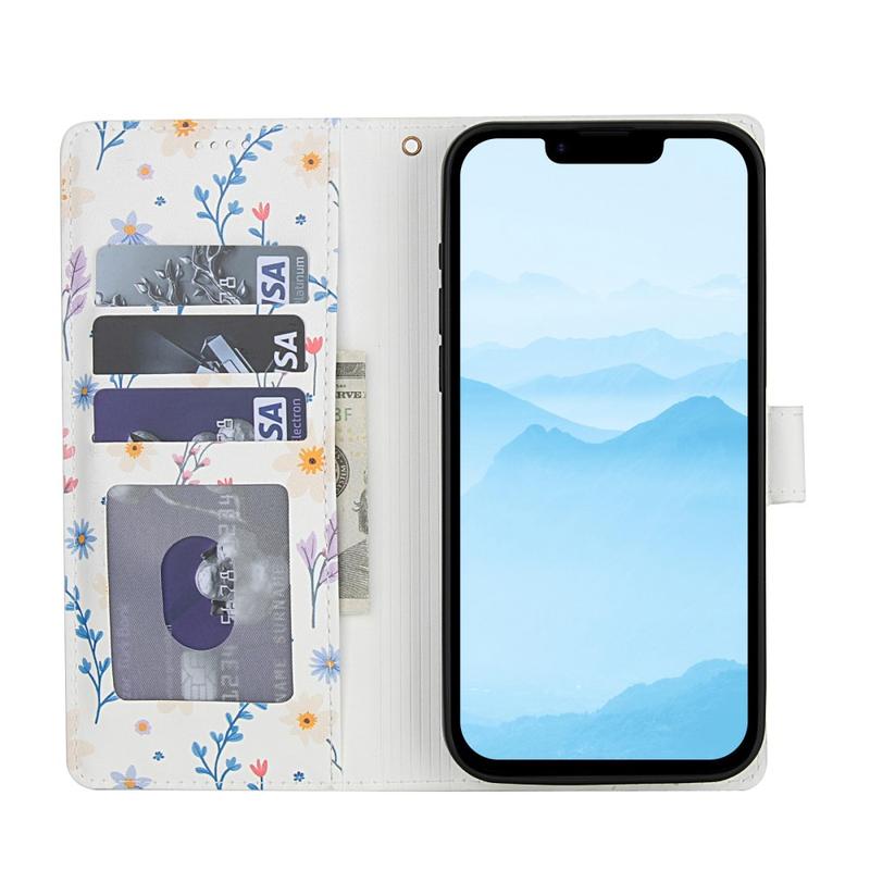 Étui portefeuille à motif floral rhombique pour iPhone 16e - avec dragonne et fentes pour cartes