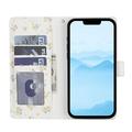 Étui portefeuille à motif floral rhombique pour iPhone 16e - avec dragonne et fentes pour cartes