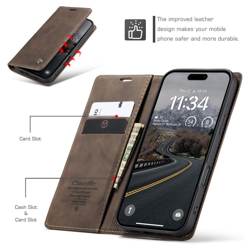 - Les aimants intégrés maintiennent l'étui portefeuille de la série Caseme 013 fermé