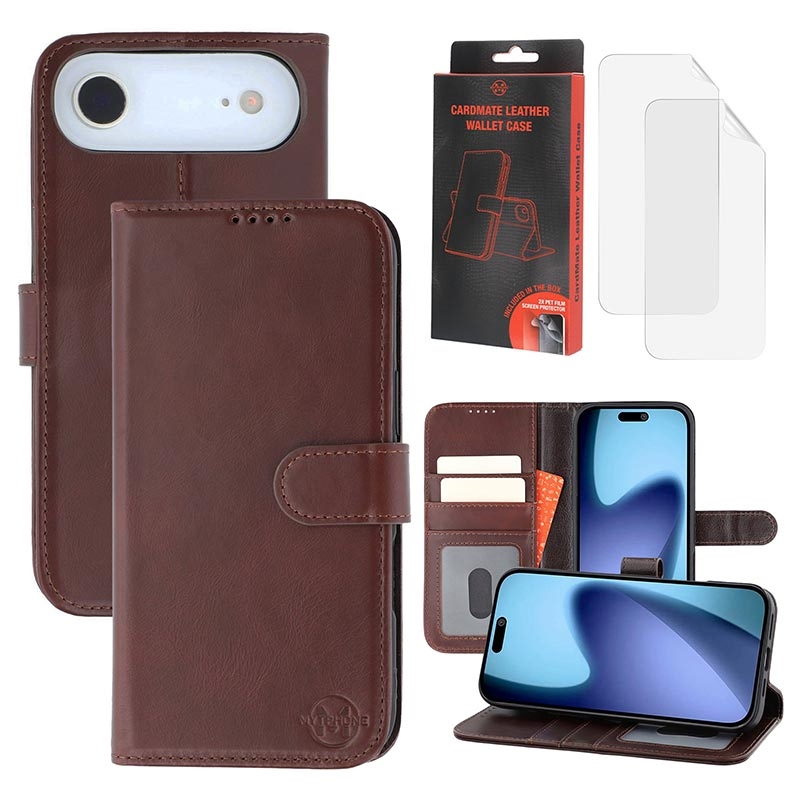 MyTPhone CardMate Premium étui portefeuille en cuir pour iPhone Air - Stand, porte-cartes, recharge sans fil, 2 protections d'écran