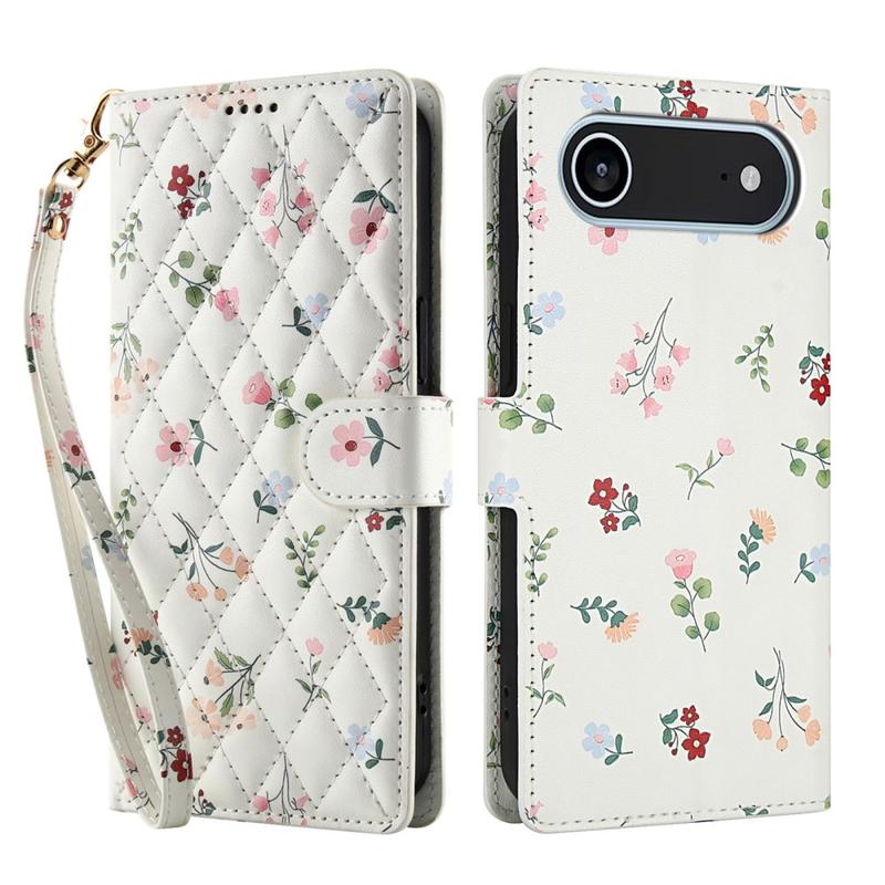 Étui portefeuille à motif floral rhombique pour iPhone Air - avec dragonne et fentes pour cartes