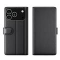 Un étui sophistiqué de haute qualité pour votre iPhone 17 Pro Max. Donnez à votre téléphone un look haut de gamme, tout en le protégeant des rayures et des dommages courants. Cet étui portefeuille multifonctionnel en cuir souple a des poches intérieures pour les cartes et une plus grande poche pour l'argent. En plus de cela, l'étui en cuir véritable iPhone 17 Pro Max a un support de visualisation mains libres et une découpe avant pour parler avec l'étui fermé.