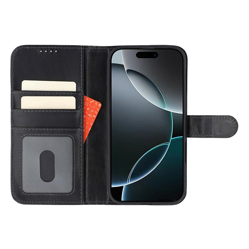 • MyTPhone CardMate Premium étui portefeuille en cuir pour iPhone 17 Pro Max - Stand, porte-cartes, recharge sans fil, 2 protections d'écran
