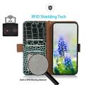 Étui Portefeuille iPhone 17 Pro Max en Cuir avec RFID - Série Crocodile - Vert