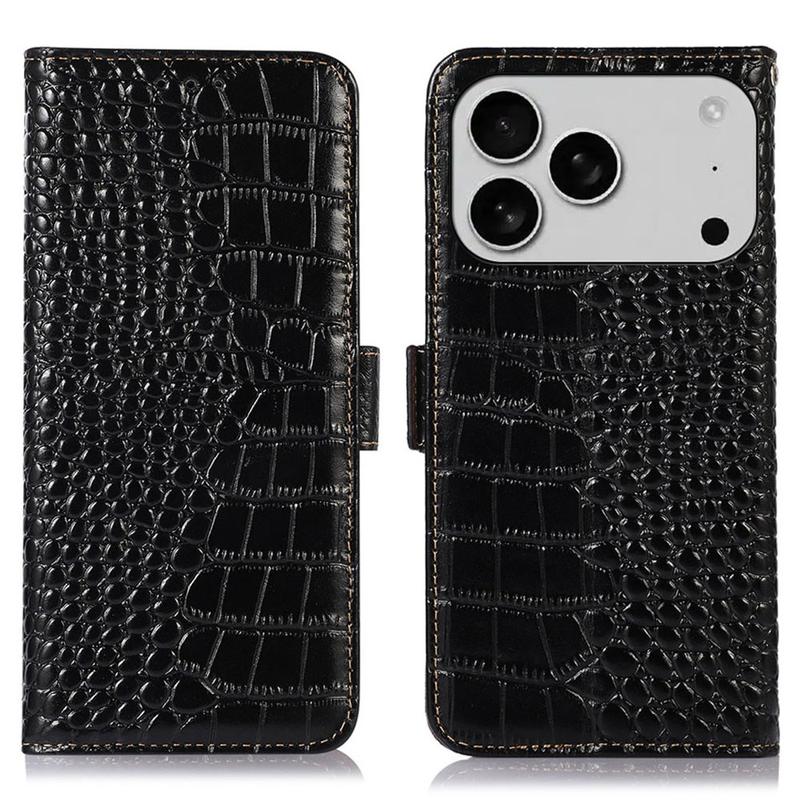 - Étui en cuir de portefeuille de la série Crocodile pour iPhone 17 Pro Max