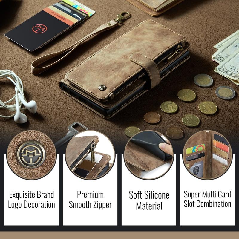 L'étui portefeuille multifonction Caseme C30 pour iPhone 17 Pro apporte une protection complète exceptionnelle et un design exclusif et raffiné. Cette coque élégante est fabriquée en polyuréthane de qualité supérieure, renforcée par une coque intérieure en TPU résistant aux chocs qui épouse parfaitement votre iPhone 17 Pro. Pendant ce temps, l'étui portefeuille Caseme C30 est doté de nombreux emplacements pour cartes, d'un grand compartiment pour billets à l'intérieur et d'une poche extérieure zippée, le tout protégé par une fermeture magnétique sécurisée.