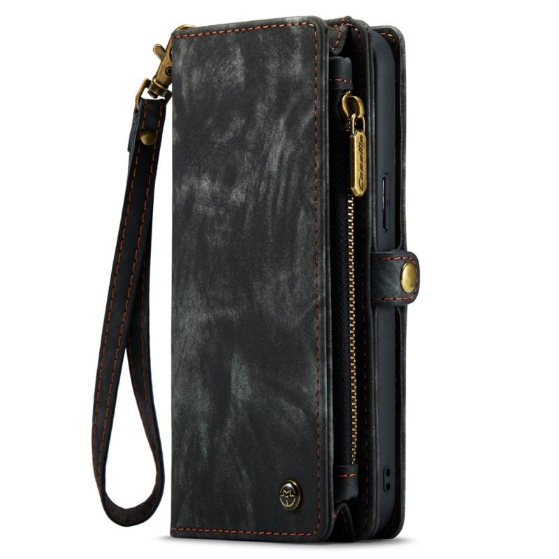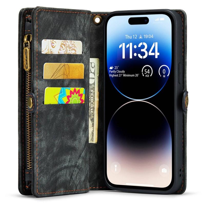 CASEME 008 Series for iPhone 14 Pro Max Multi-Functional Detachable Magnetic Phone Case Split Leather Stand Zipper Pocket Wallet Cover with Strap