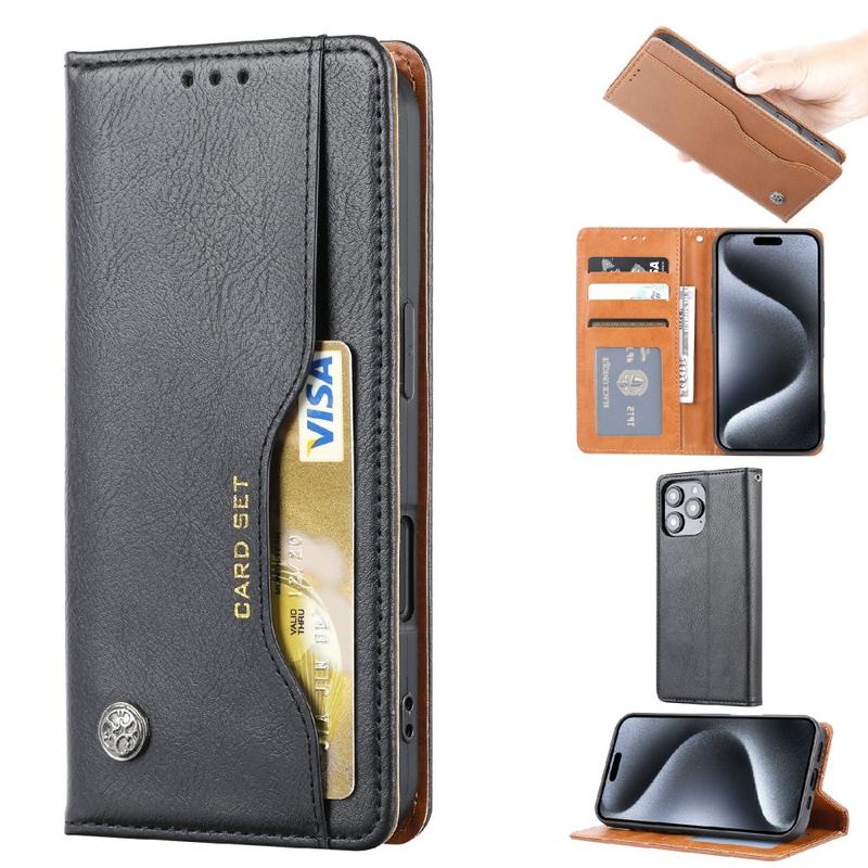 Étui portefeuille pour jeu de cartes pour iPhone 16 Pro - Fermeture magnétique, fentes pour cartes multiples, Kickstand
