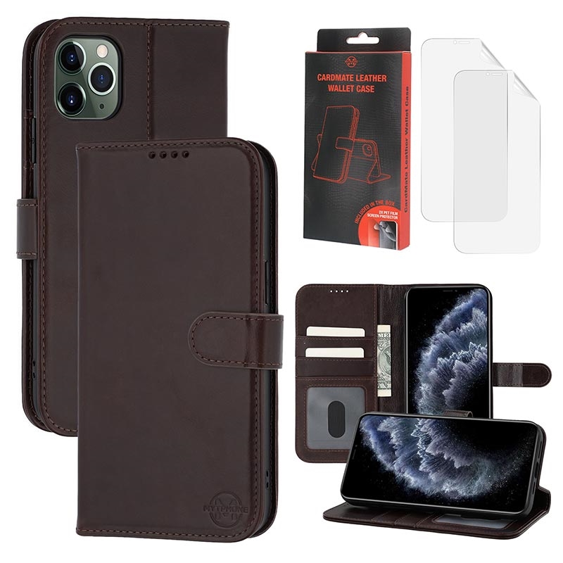 MyTPhone CardMate Premium étui portefeuille en cuir pour iPhone 11 Pro Max - Stand, porte-cartes, recharge sans fil, 2 protections d'écran