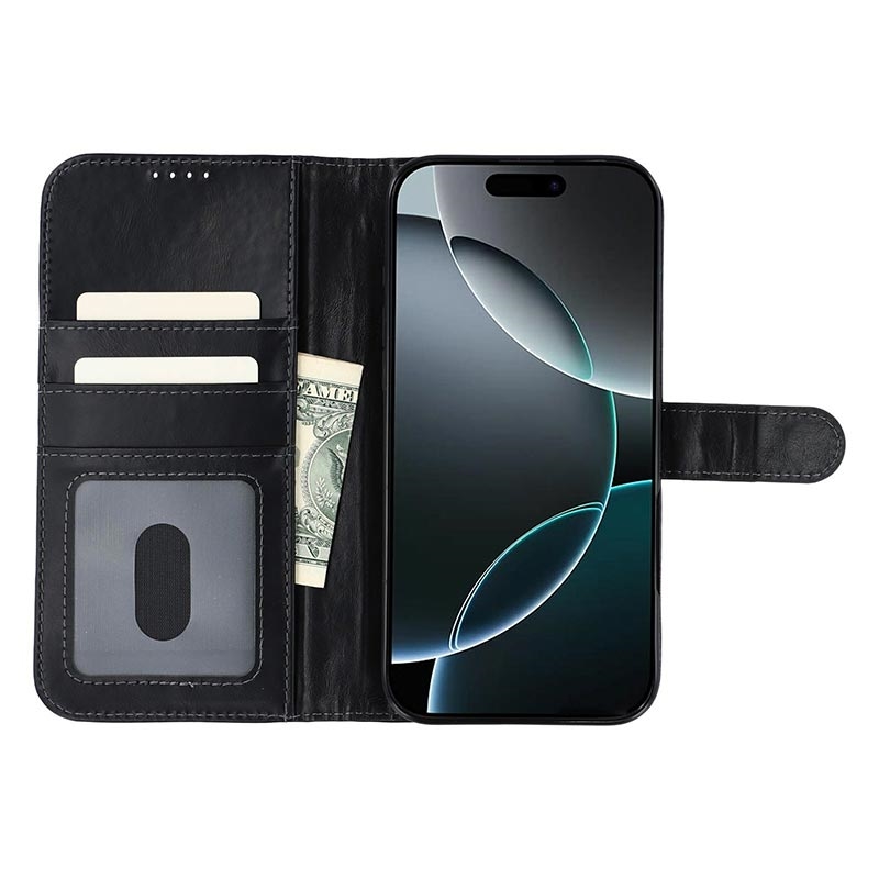 MyTPhone CardMate Premium étui portefeuille en cuir pour iPhone 16 Pro Max - Stand, porte-cartes, recharge sans fil, 2 protections d'écran