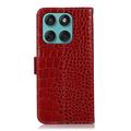 - Étui en cuir de portefeuille de la série Crocodile pour Motorola Edge 60 Fusion