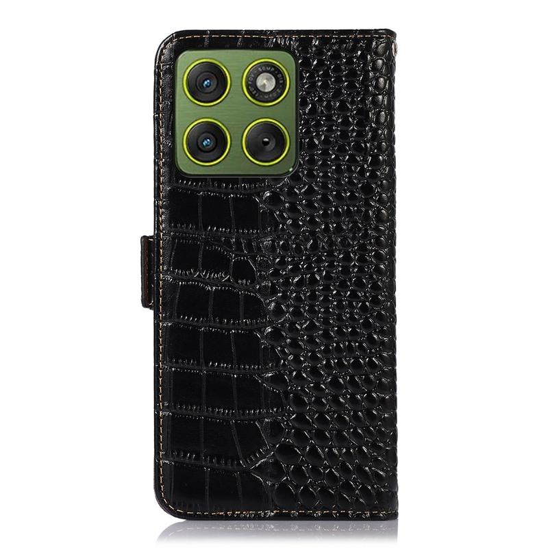 - Étui en cuir de portefeuille de la série Crocodile pour Motorola Edge 70