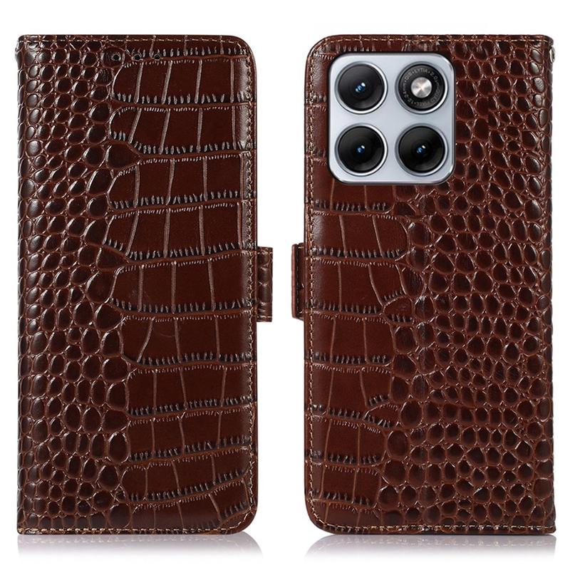 - Étui en cuir de portefeuille de la série Crocodile pour Motorola Edge 70 Fusion